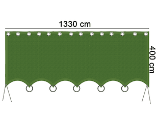 Toldo en malla 90% sombra Premium color verde con argollas y ojetillos 13.30 mt largo x 4.00mt ancho, con anclajes por todo el contorno